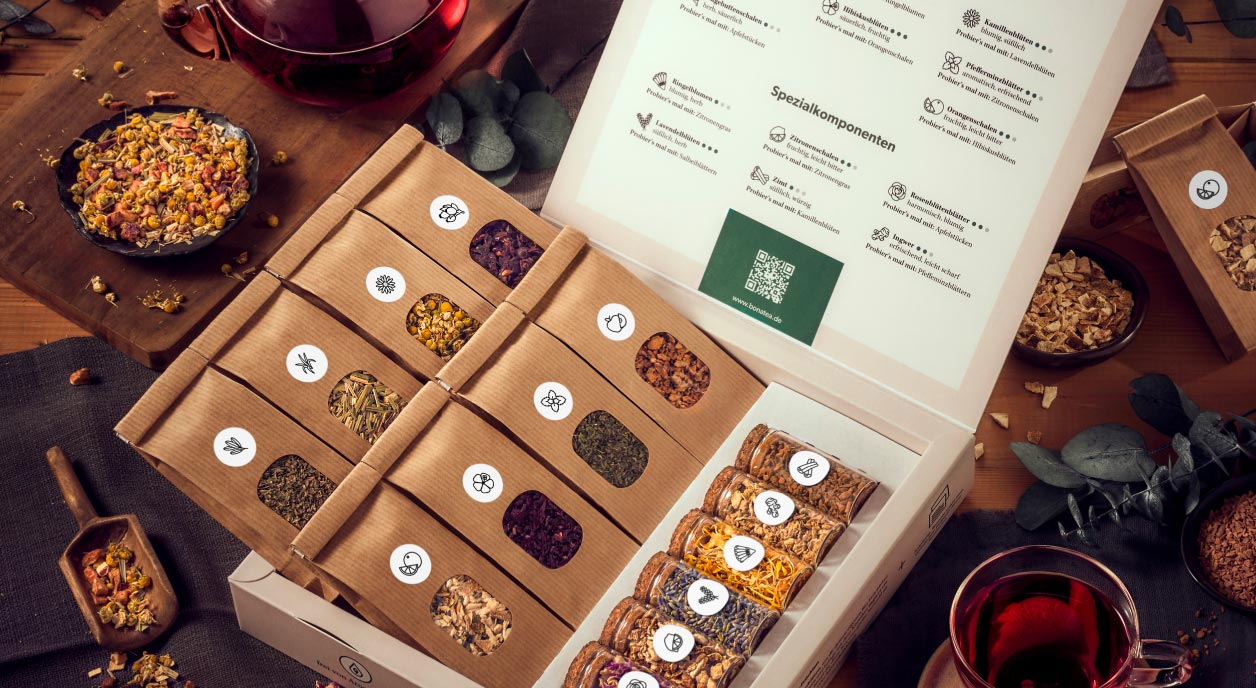 Mit unseren Tee-Sets verschenkst du ein ganz besonders Erlebnis, das von Herzen kommt. Mischt euch gemeinsam euren eigenen ganz persönlichen Tee und entdeckt neue Geschmäcker.