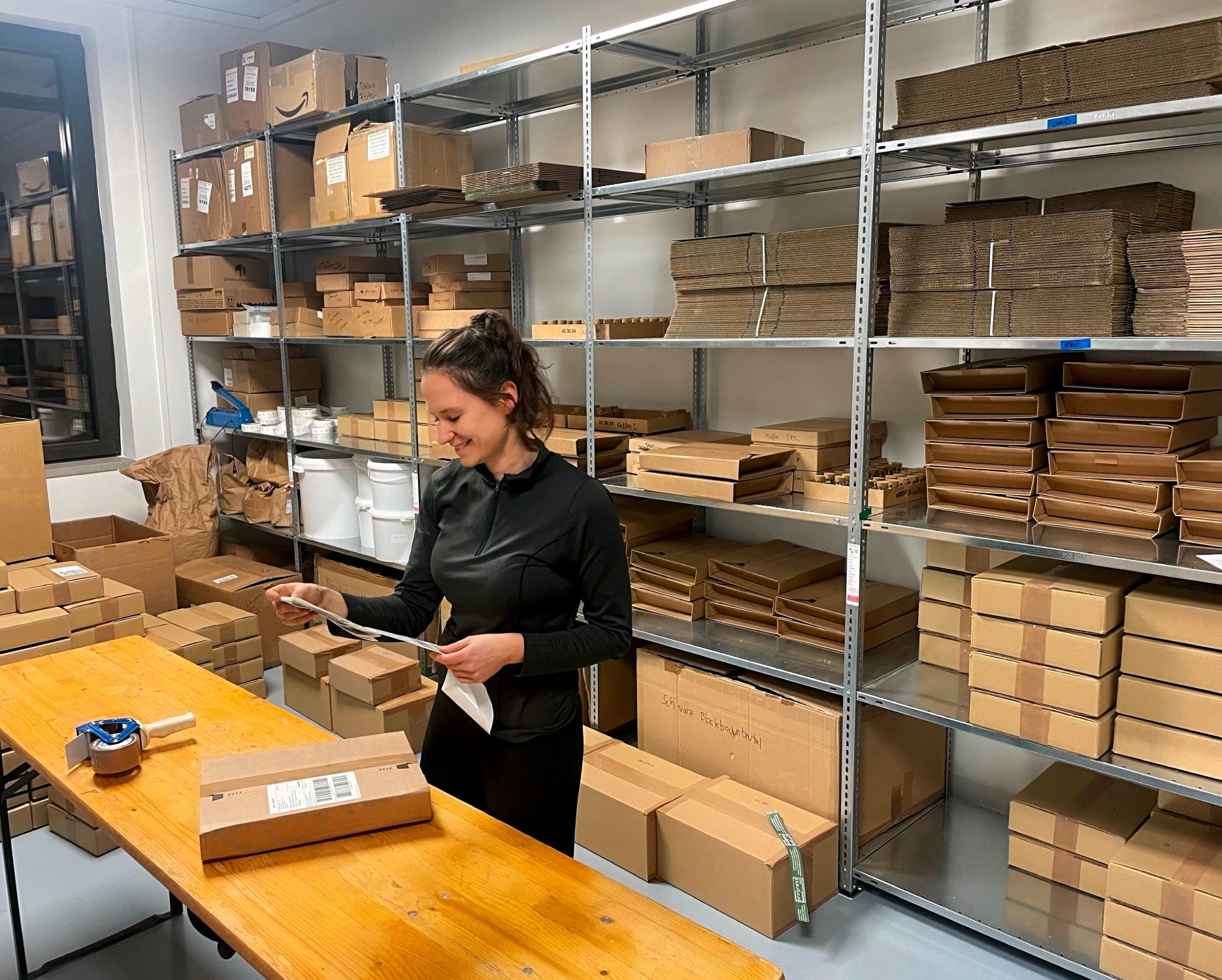 Die WG wurde schnell zu klein, also zogen wir in unsere erste Produktionshalle. Mit Fabis E-Commerce-Know-how und Felis Tee- und Design-Expertise verbesserten wir unser erstes Set, optimierten Abläufe und entwickelten neue DIY-Sets. Seitdem gilt für uns: ausprobieren, testen und unsere Produkte Schritt für Schritt besser machen.