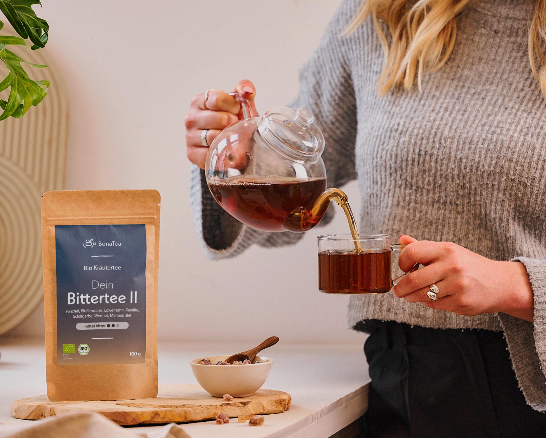 Es kamen weitere Teemischungen mit klarem Fokus dazu. Besonders stolz sind wir auf unseren Bittertee, den es in drei Bitterstufen gibt – so kann jeder selbst entscheiden, wie bitter es sein darf. Er wurde schnell zu unserem Bestseller und zeigt, was uns antreibt: Produkte zu entwickeln, die echten Mehrwert bieten.